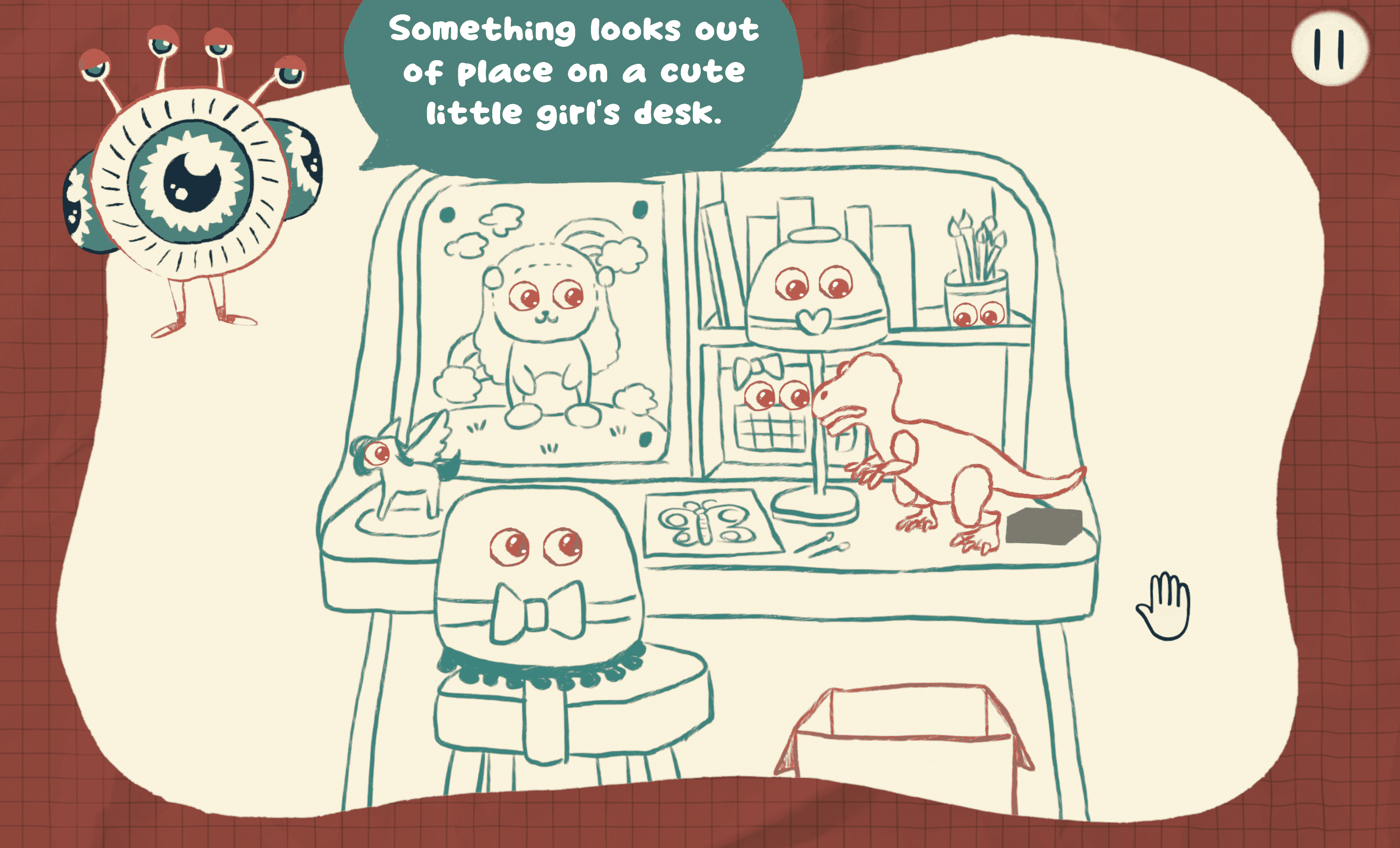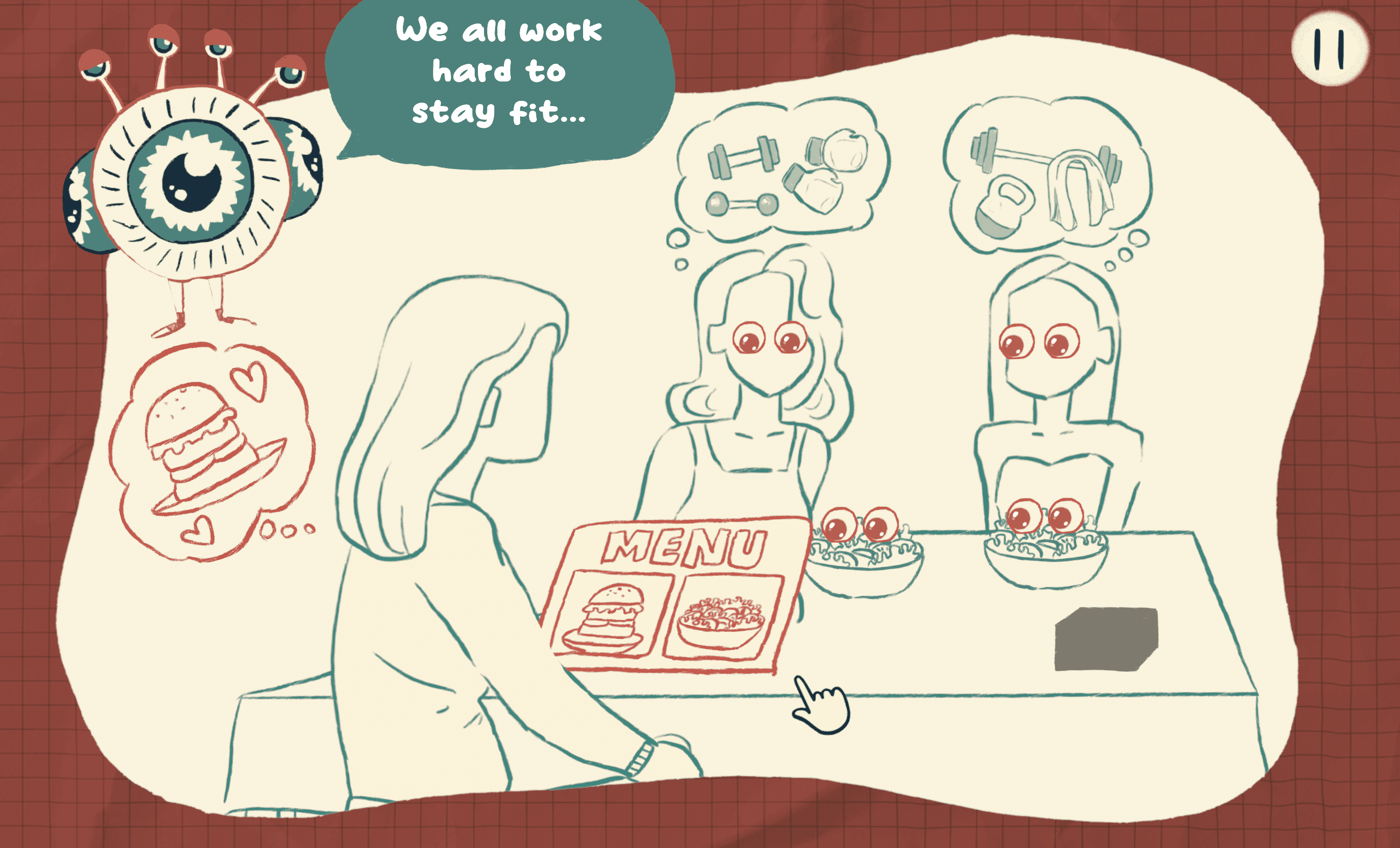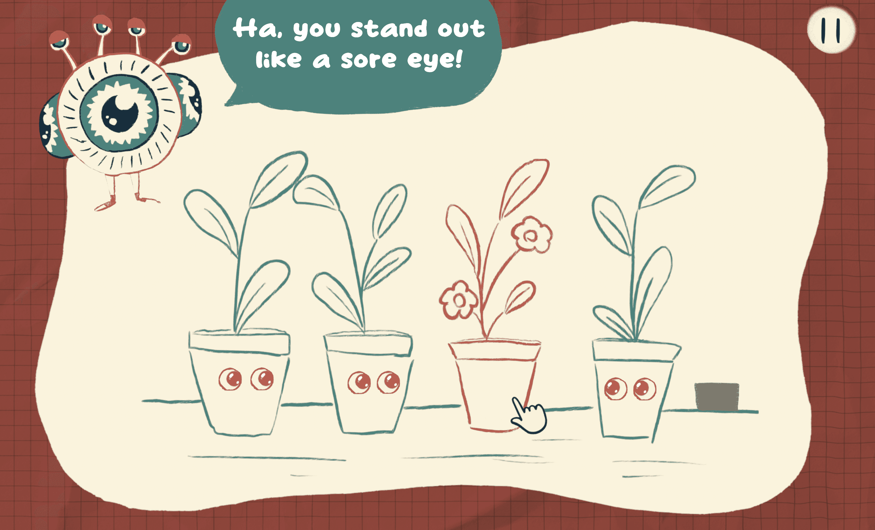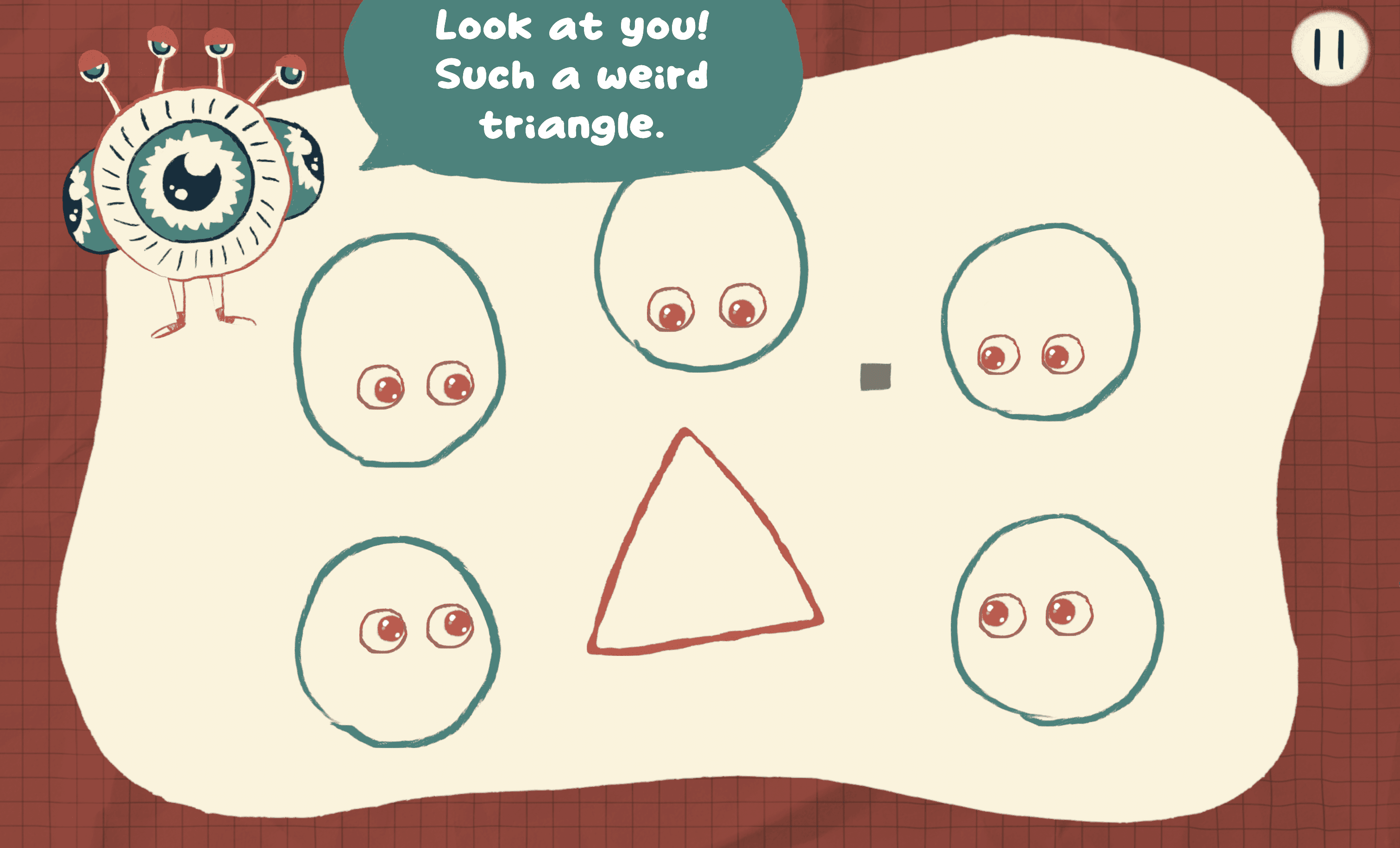Players begin as red characters, out of alignment with social norms, and complete levels by adjusting interactions. Success is visualized as closing Peepers’ eyes and turning characters green, signaling progress and clarity in gameplay.