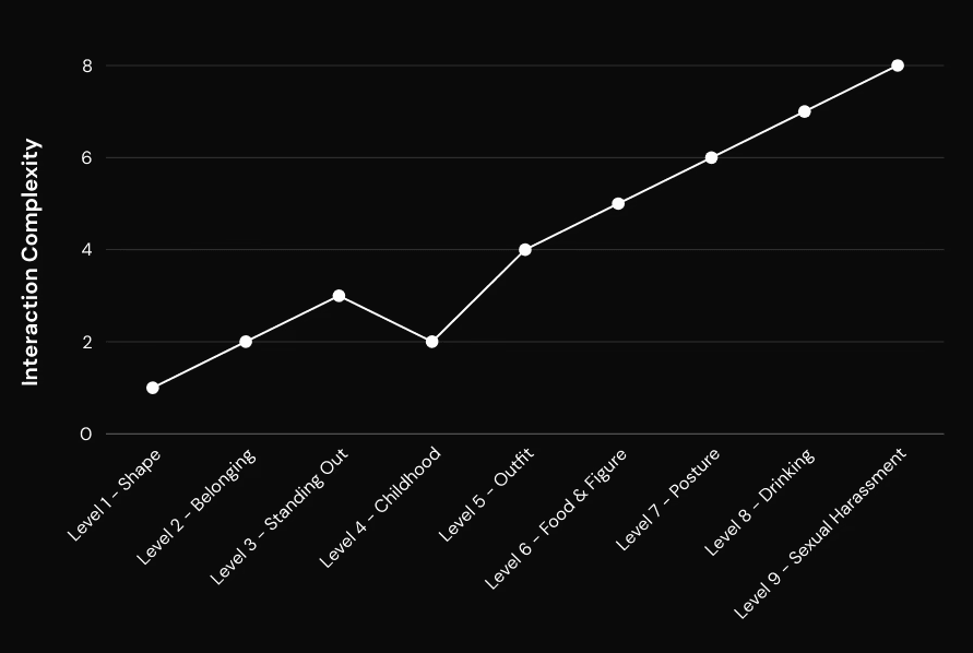 Gender Roles (Levels 4–6): Players confront restrictive expectations.
