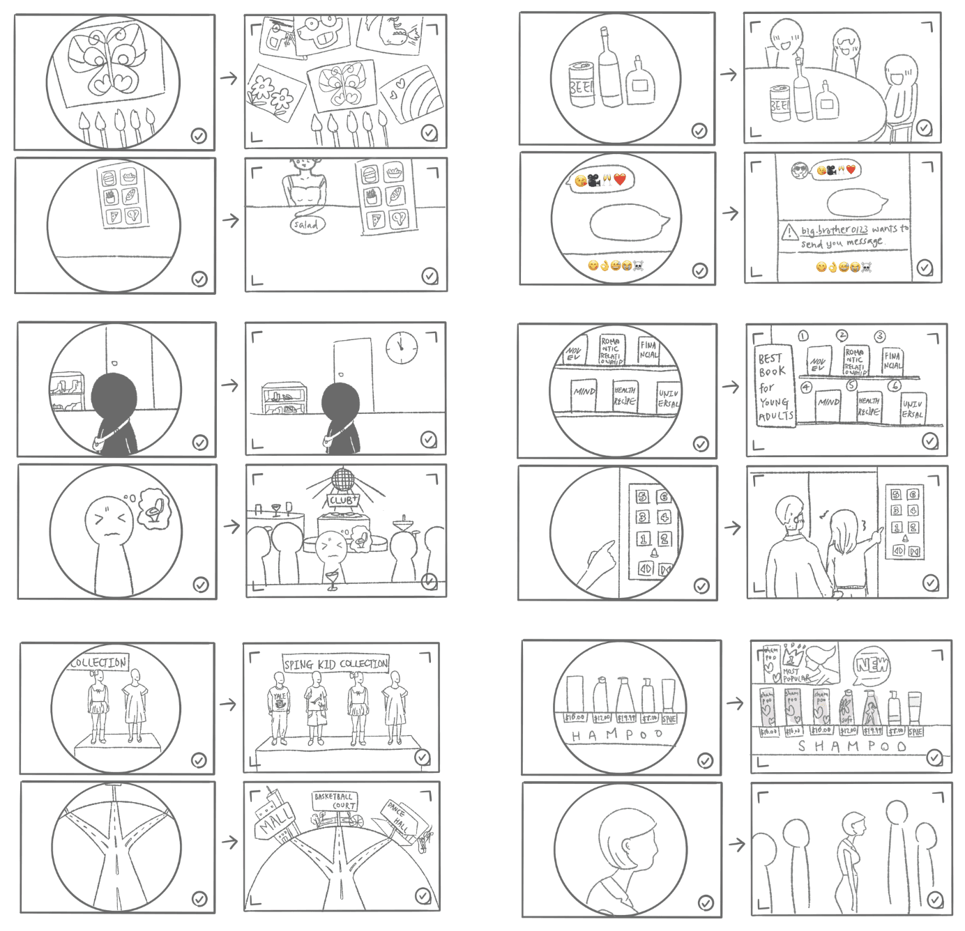 I decided to highlights daily gray-area scenarios that are in gray-areas where individuals may feel vulnerable under social expectations, particularly in the context of gender politics.